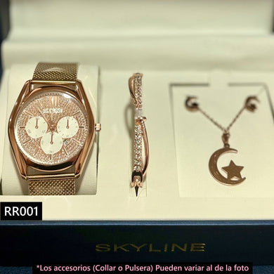 Reloj Dama Color Oro Rosa de Acero Inoxidable + Accesorios RR001