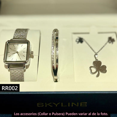 Reloj Dama Color Plateado de Acero Inoxidable + Accesorios RR002