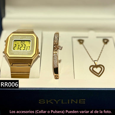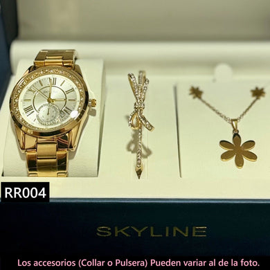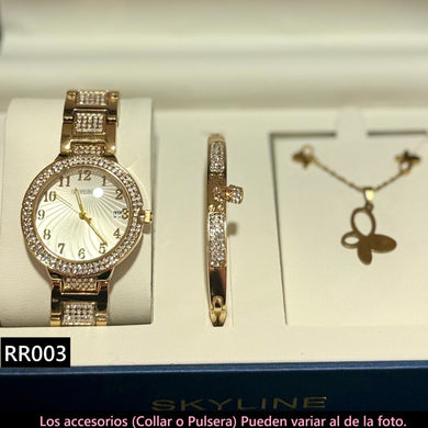 Reloj Dama Color Dorado de Acero Inoxidable + Accesorios RR003