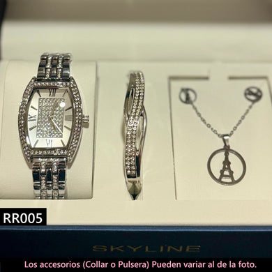 Reloj Dama Color Plateado de Acero Inoxidable + Accesorios RR005
